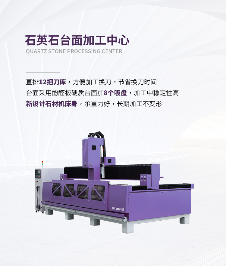 濟南藍象數控機械有限公司是一家自動化數控設備研發、制造、銷售、售后服務于一體的高新技術企業,歐米克數控主營產品有:石英石臺面加工中心,四軸加工中心,五軸加工中心,泡沫模具加工中心等。公司設有完善的科研團隊,結合客戶需求,著力打造高質量,高水準的數控加工中心。憑借自身的優良設備,結合售后服務團隊,為您打造屬于您的定制機器。